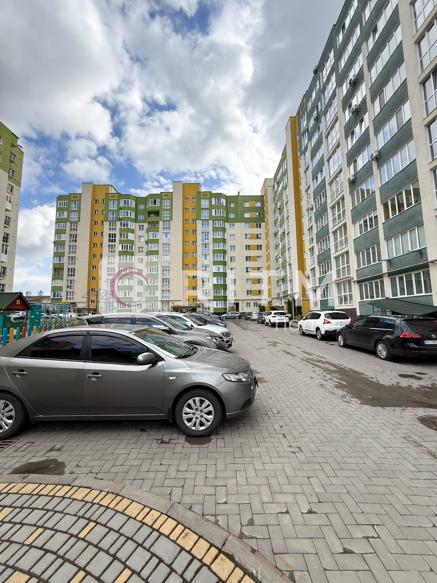 Житловий комплекс розташований у затишному районі. Поруч торговий центр, ринок, магазини, аптеки. відділення пошти та банків, зупинки громадського транспорту. Доглянута прибудинкова територія з достатньою кількістю паркувальних місць. На території є дитячий та спортивний майданчики.