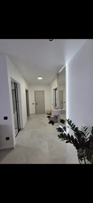 Квартира повністю укомплектована меблями та побутовою технікою: холодильник, варильна поверхня, духова шафа, мікрохвильова піч, посудомийна та пральна машина. Є підігрів підлоги, балкон, гардеробна, швидкий інтернет.