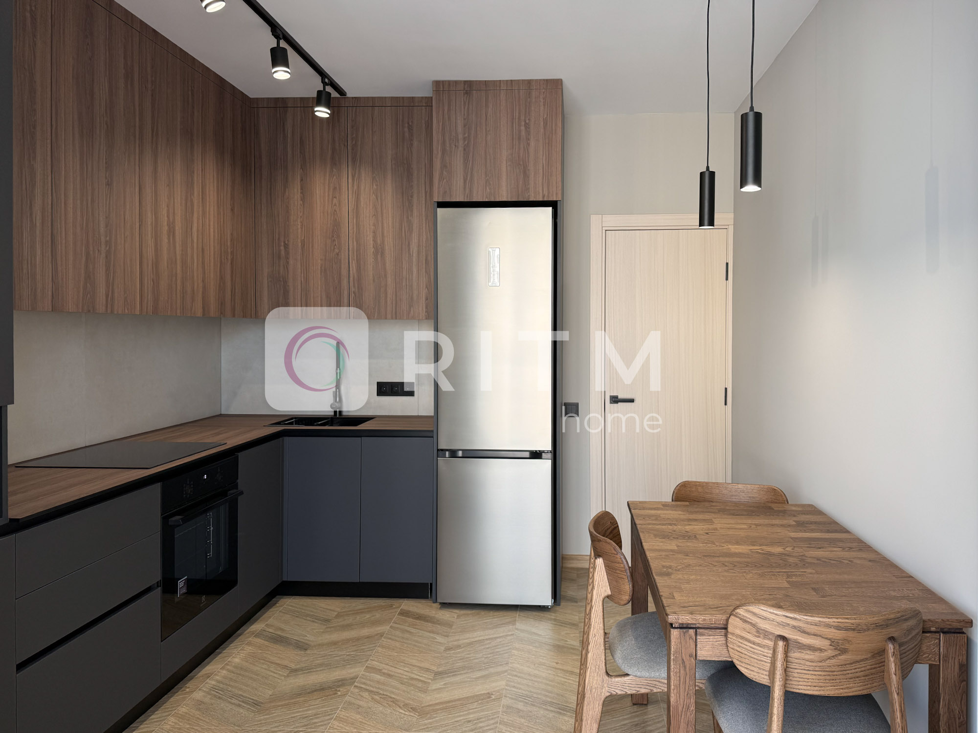 Квартира укомплектована всією необхідною технікою: холодильник, духова шафа, мікрохвильовка, варильна поверхня, посудомийна машина, чайник, пральна машина, кондиціонер, рушникосушка, пилосос.