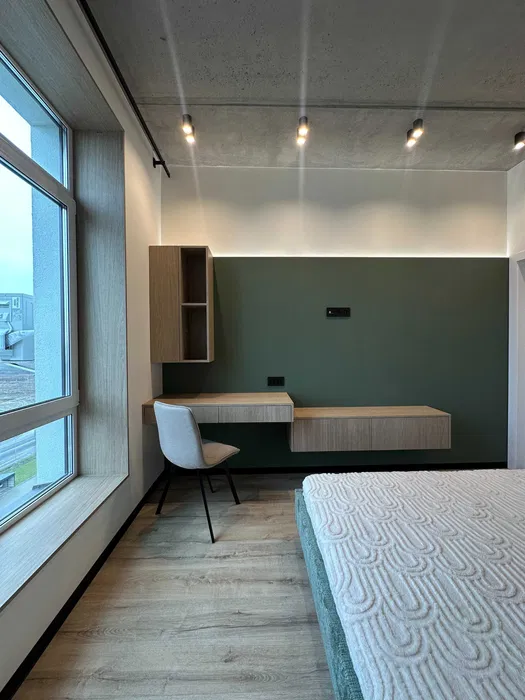 Окрема спальня із зручним робочим місцем.