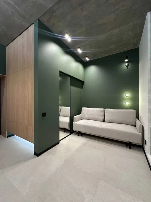 У зоні відпочинку: розкладний диван, гардероб, телевізор.