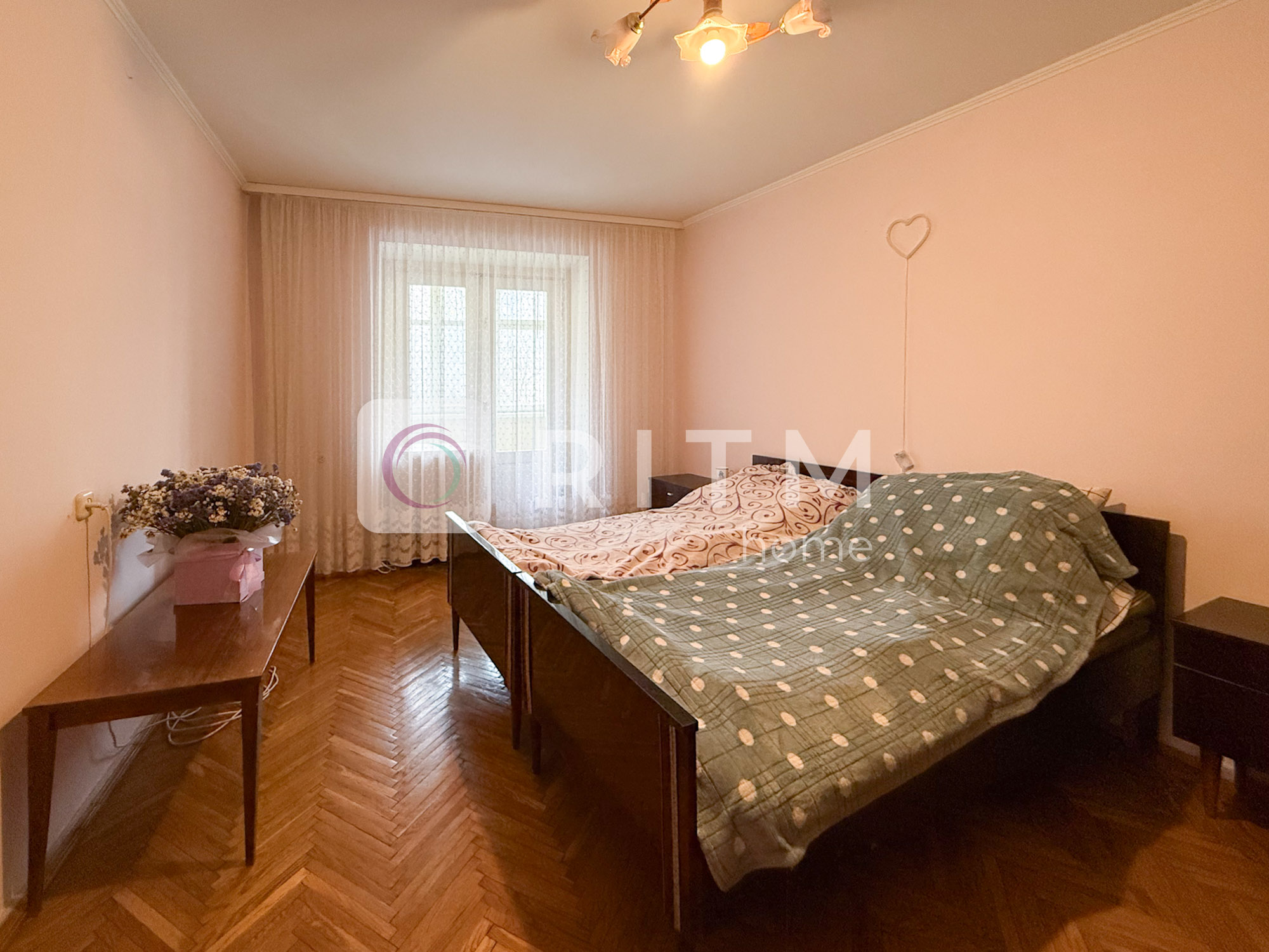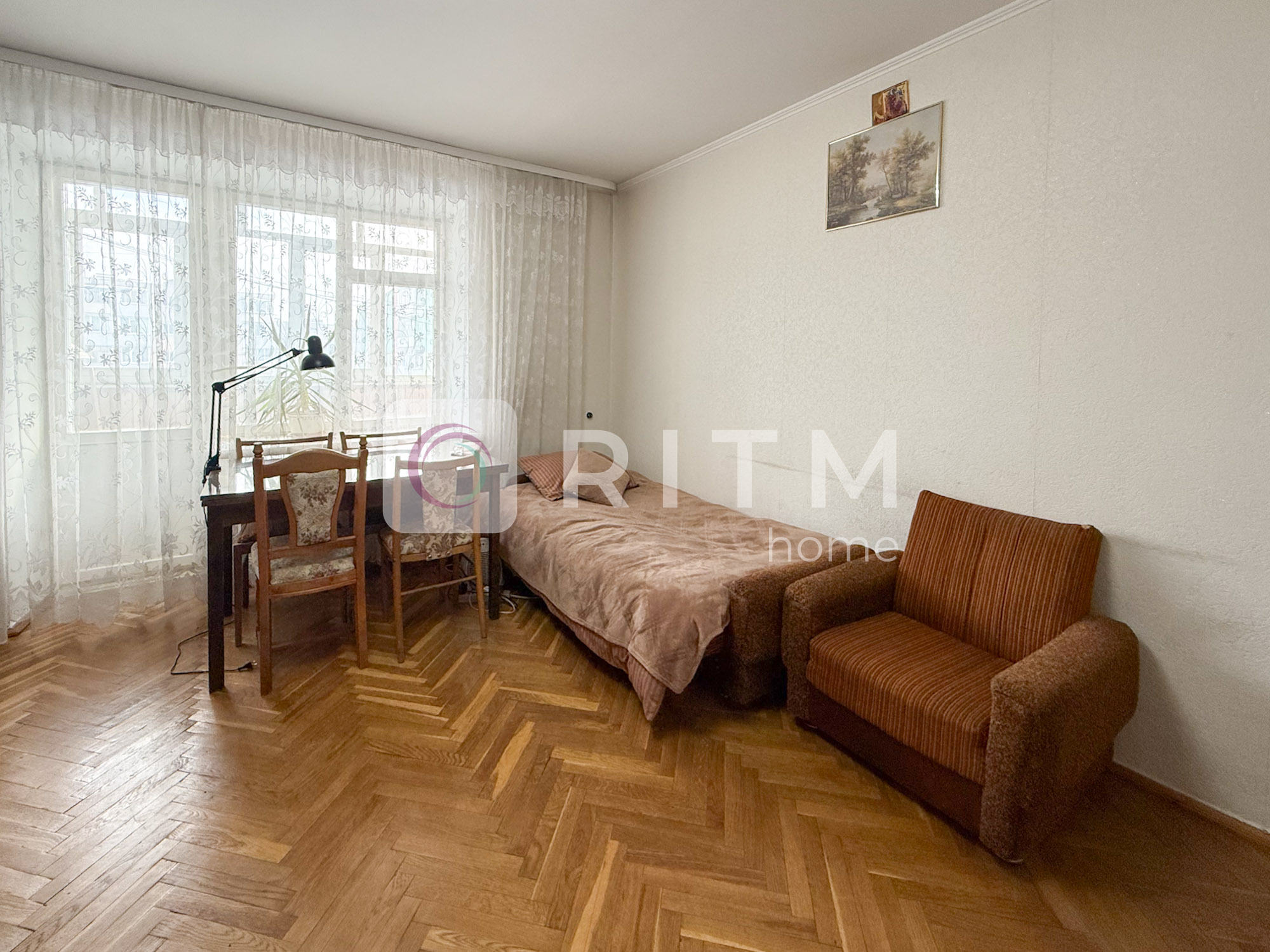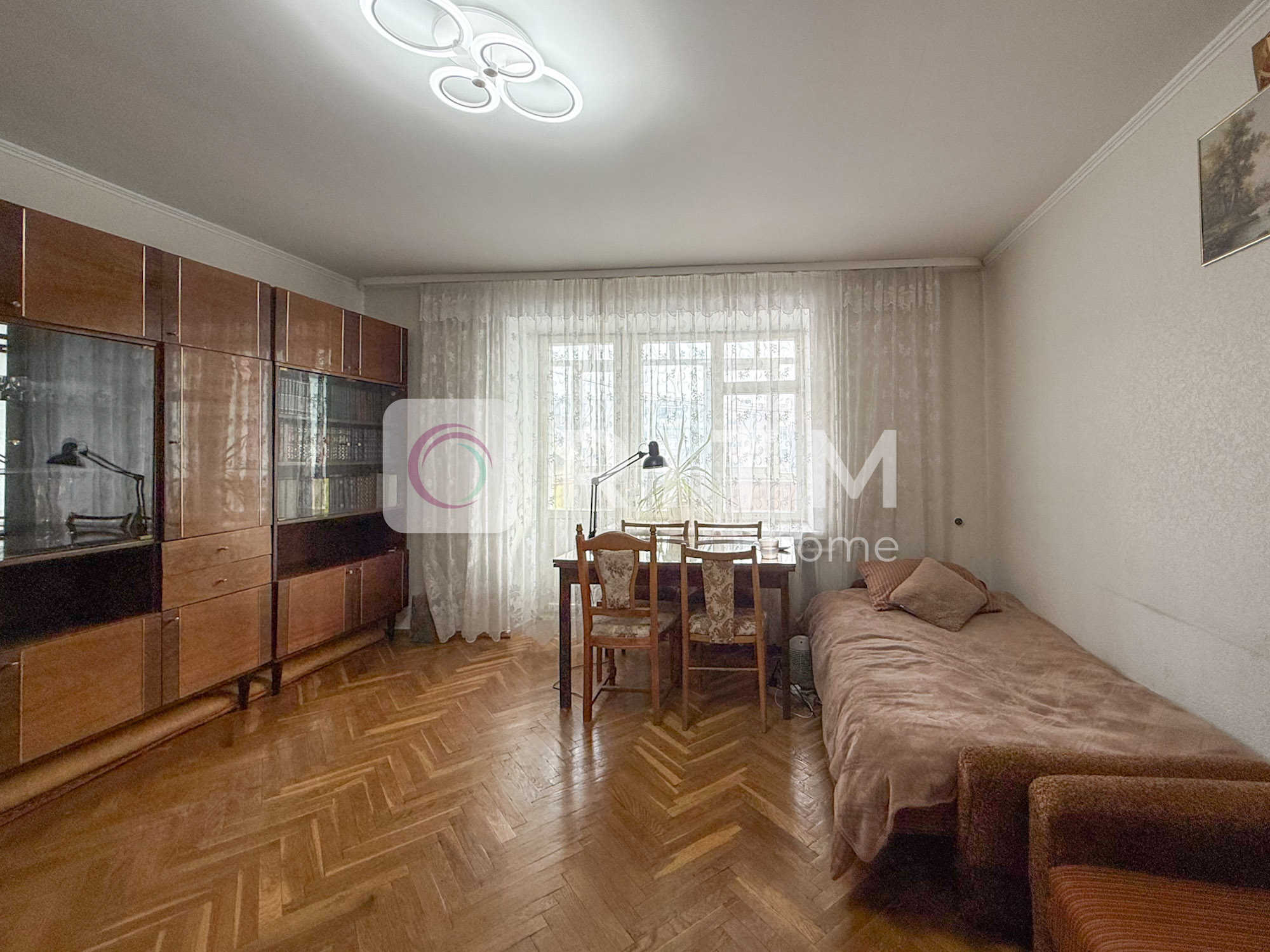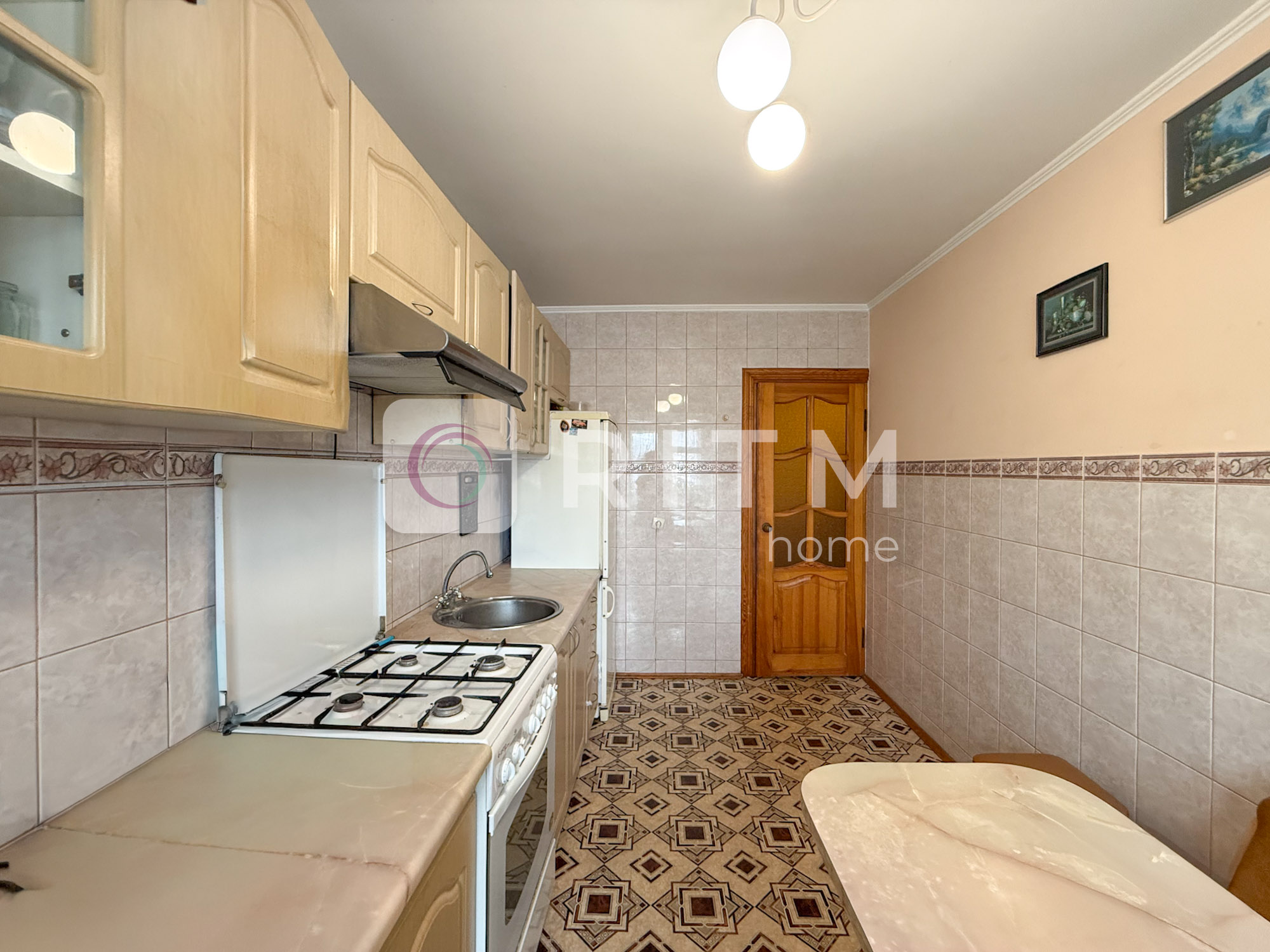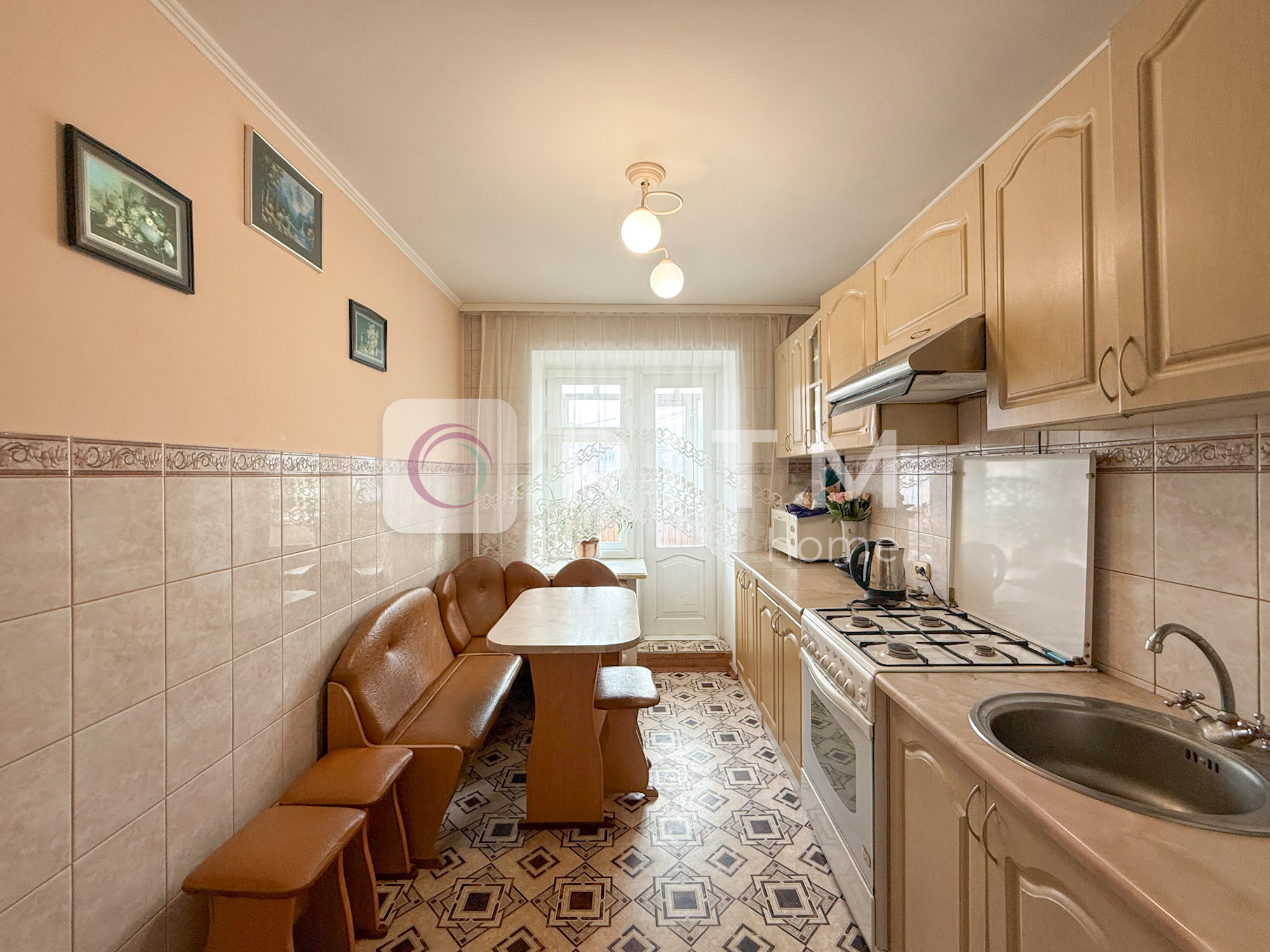 Загальна площа — 75 м², велика кухня 12 м². Кімнати роздільні, планування зручне для сім’ї або кількох людей. Санвузол роздільний. Є два балкони. Квартира у житловому стані, світла та охайна.