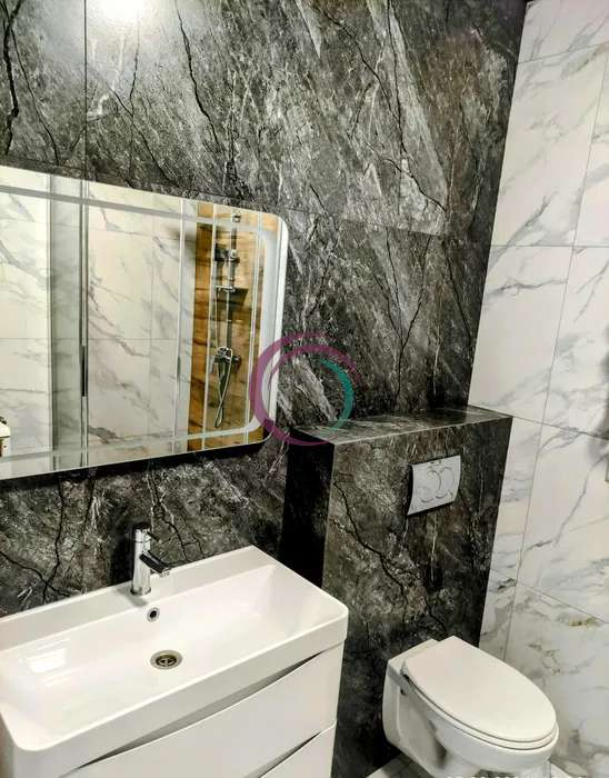 Комфортна квартира з просторою кухнею що містить шафи для зберігання посуду та побутову техніку (варильна панель, духова шафа, ), що допоможуть у приготуванні та підтримуванні чистоти. Поряд зручний обідній стіл. Ванна кімната має необхідну сантехніку та пральну машину.