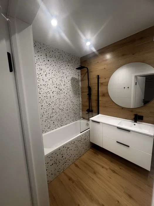У квартирі є вся необхідна техніка: холодильник, пральна та посудомийна машина, варильна поверхня, духовка, мікрохвильова піч, телевізор. Санвузол обладнаний ванною. Будинок оснащений ліфтом та системою пожежної безпеки.